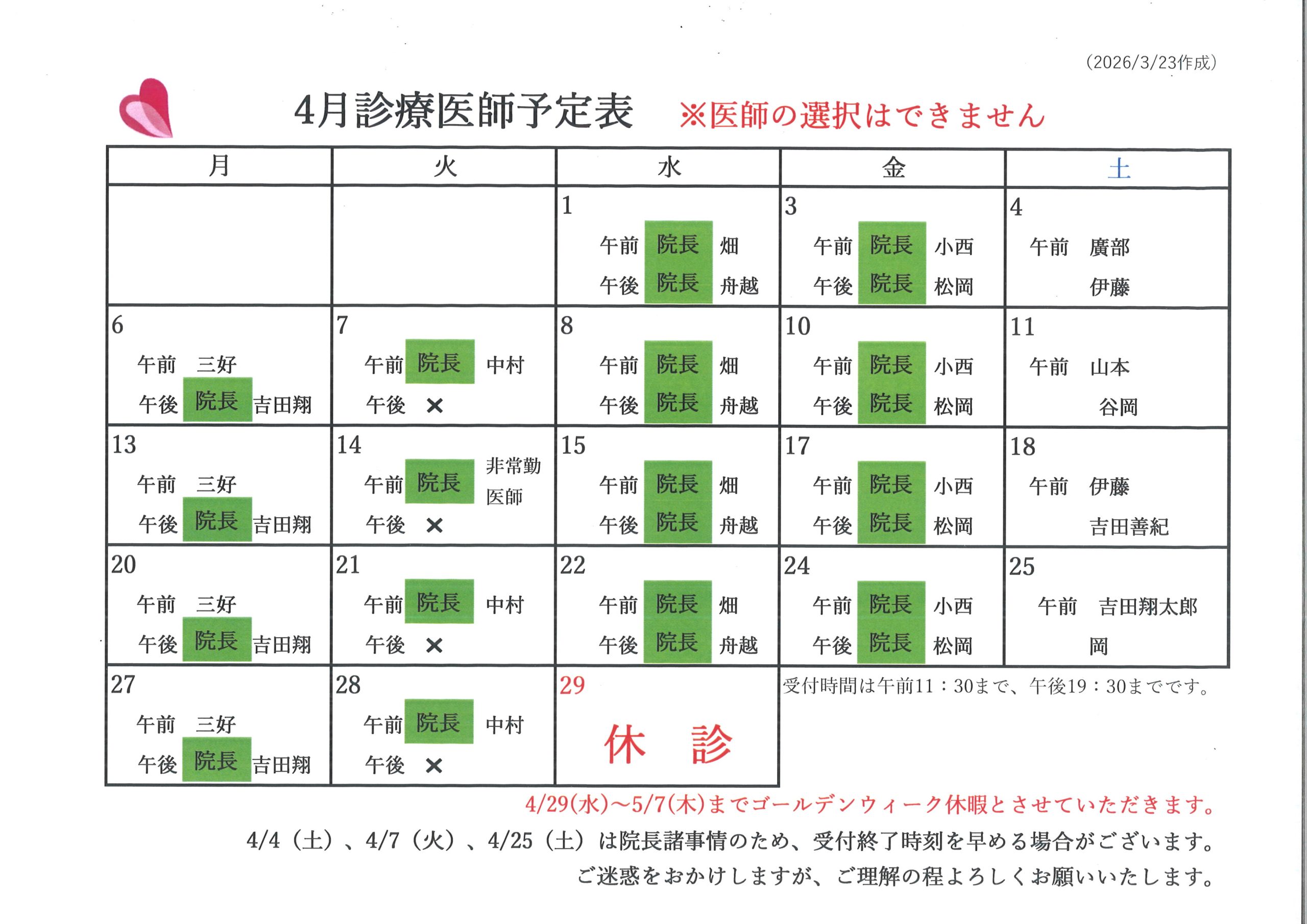| 休診日 | 木曜、日曜、祝日、火曜・土曜午後 |