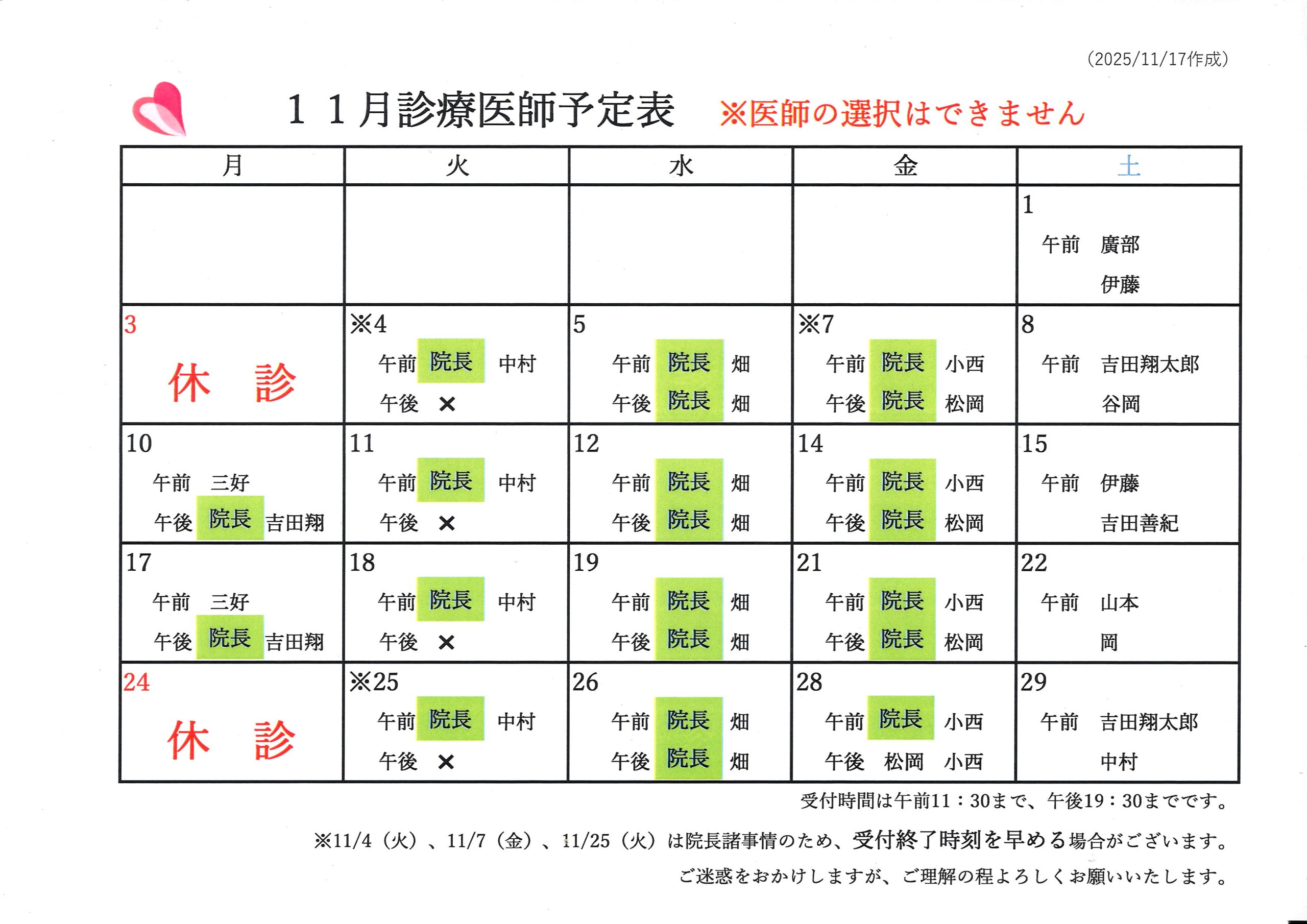 2025年11月診療のご案内